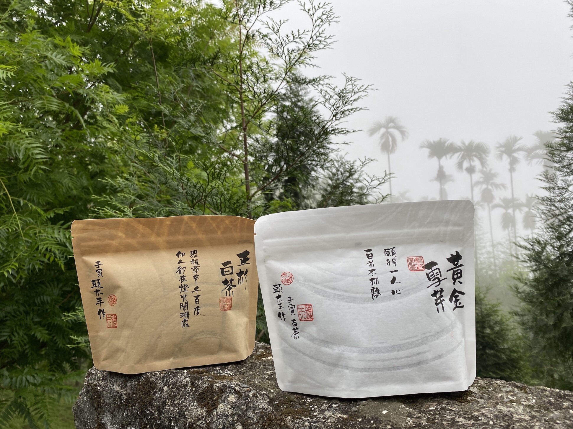 The next teas for our monthly tasting will be two limited quantity Nantou, Taiwan white teas from our Shan Lin Xi farmers, the Yeh family. In the last few years, they have produced small batches of a Qing Xin oolong varietal processed as a white tea. The two teas, Golden Snow Sprout 黃金雪芽 (winter 2022/3) and Zheng Shan Bai Cha 正衫白茶 (spring 2022), were both hand-picked by Mrs. and Mr. Yeh and left to wither naturally outside before using a low temperature to heat and dry the tea. They then store the tea in special Zhuǎn yùn 轉韻 bags that help the tea continue to deepen in taste when aging. Mrs. Yeh put special care into each bag, hand-writing the tea name, their family name, the year of harvest, and a little tea musing. We appreciate how much care their family put into these teas! We only have a limited quantity of them, and only the Zheng Shan Bai Cha正衫白茶 is available for purchase in half ounce bags.
