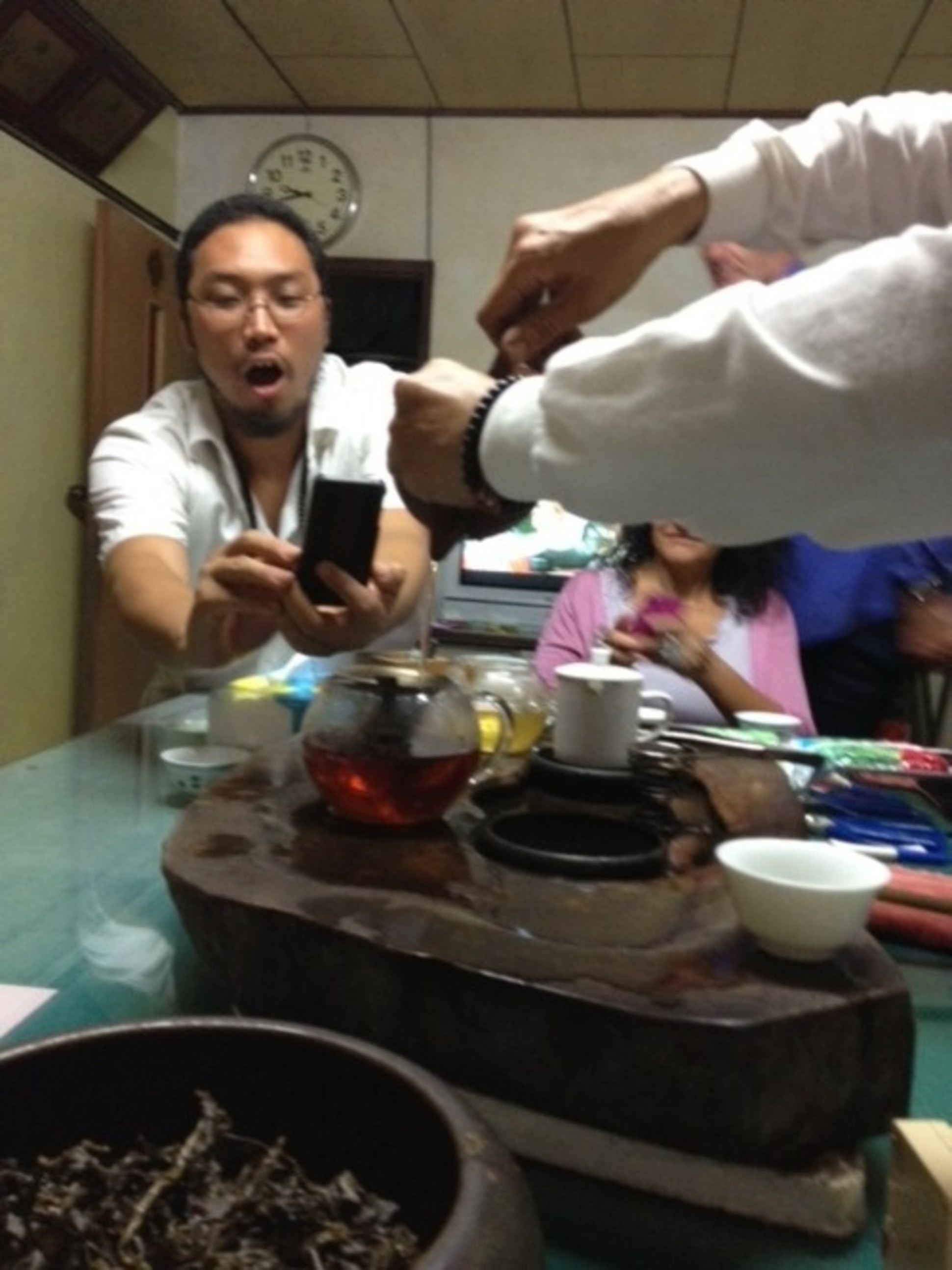 A bomb dropped when Mrs. Su took out her dowry oolong, one that is now 20 years old. She has been carefully tending and roasting and aging it since the day she brought it over on her marriage. The tour group was floored. They could not believe how smooth, how utterly lacking astringency, how energetically it completely changed and grounded them. One of the tea enthusiasts declared: ‘If this tea doesn’t get you to enlightenment, then you can’t get enlightened!’ Mrs. Su generously steeped this tea 8 times.