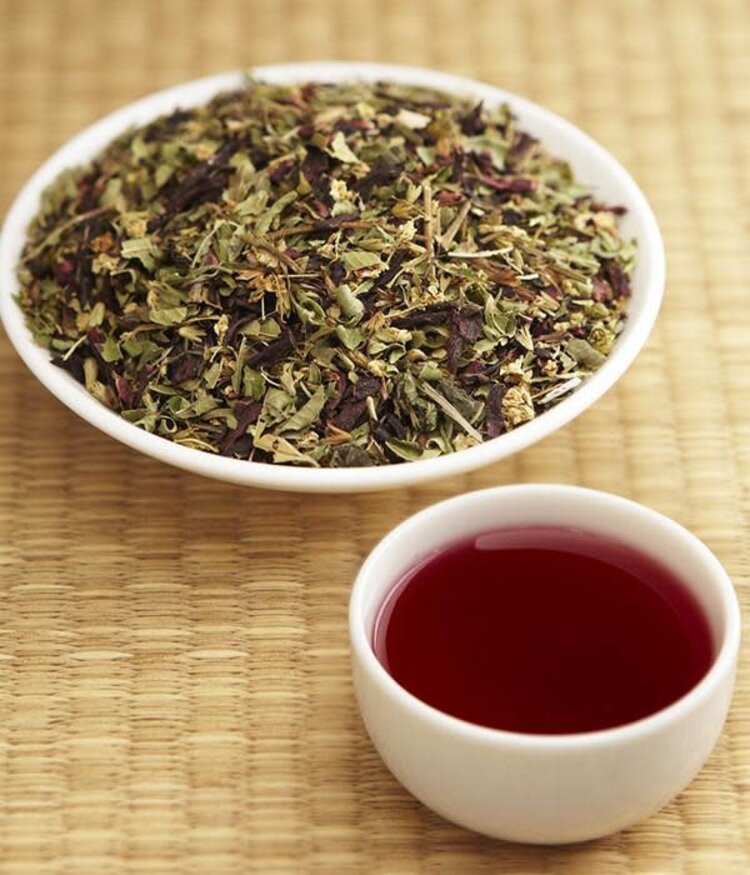 • A lively, sweet and fruity blend of hibiscus, rooibos, lemongrass, elderberries, apple & orange peel. This caffeine-free herbal infusion is naturally sweetened with Stevia. The hibiscus imparts a brilliant red color to the infusion.