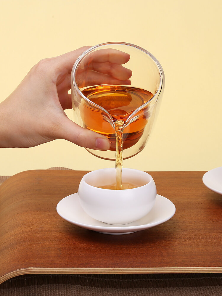• The Double Wall Glass Tea Pitcher – Evenly is a small Chinese tea pitcher made from premium silica ore, giving it exceptional clarity. Its transparent body beautifully showcases the elegant color of tea as it pours, enhancing the visual tea experience.