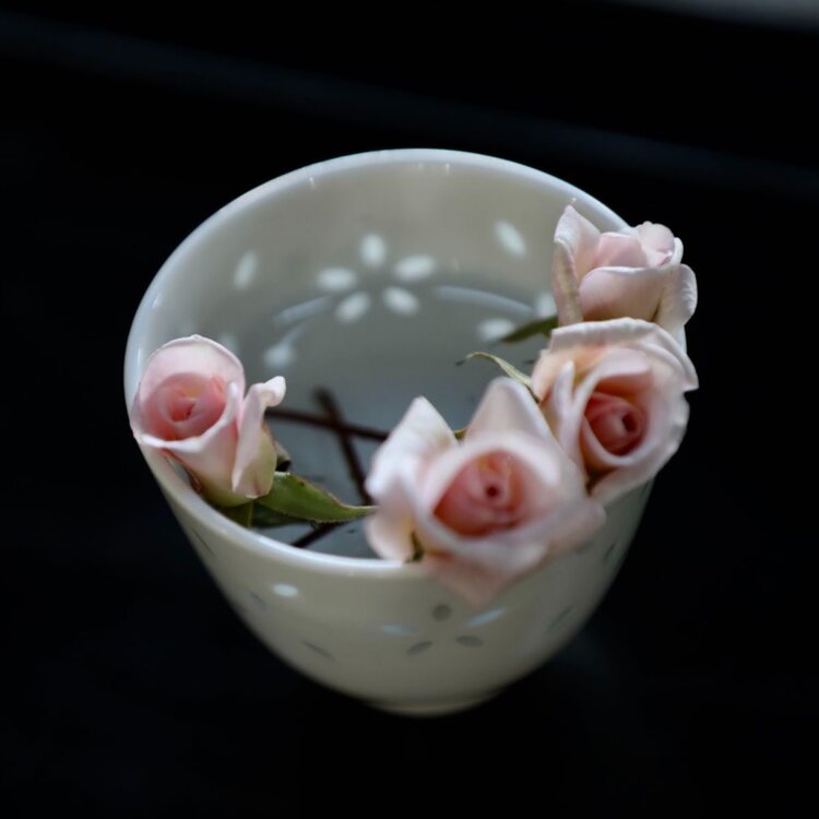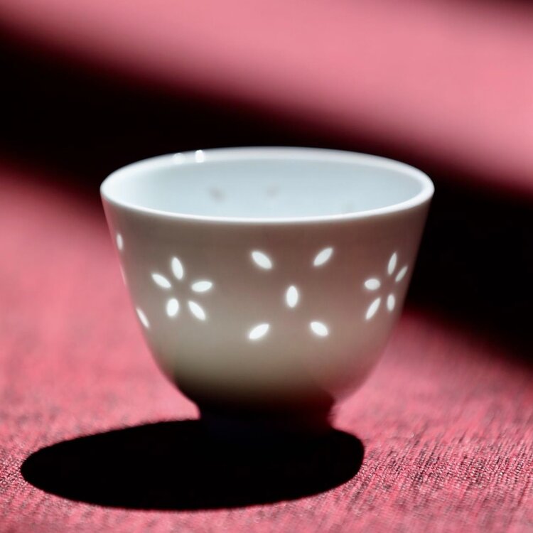 • Classic style tea cup, made in Jingdezhen. Called Ling Long Mi Tong Ci 玲瓏米通瓷 (Líng lóng mǐ tōng cí) with translucent rice grain pattern. Porcelain in translucent rice grain pattern was very popular in the 1980’s.