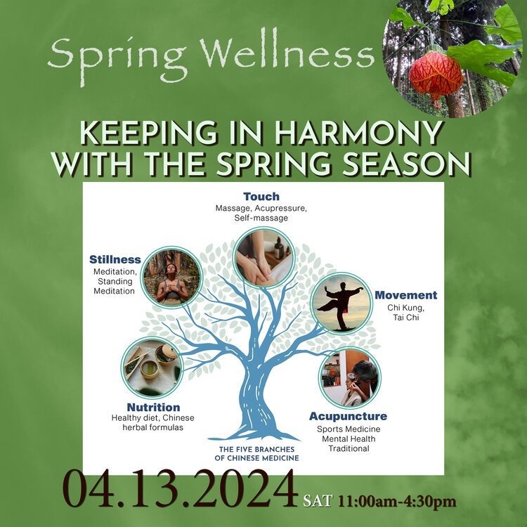 11:00am-12:00pm Keeping in Harmony with the Spring Season: Presenters - John Luna-Sparks LAc. of White Magnolia Acupuncture & Tai Chi & Katie Tao of Teance.