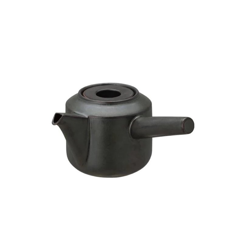• This is the standard teapot we use for table service in our teashop. Traditional Japanese kyusu design meets a contemporary aesthetic. Made of thick, sturdy porcelain.