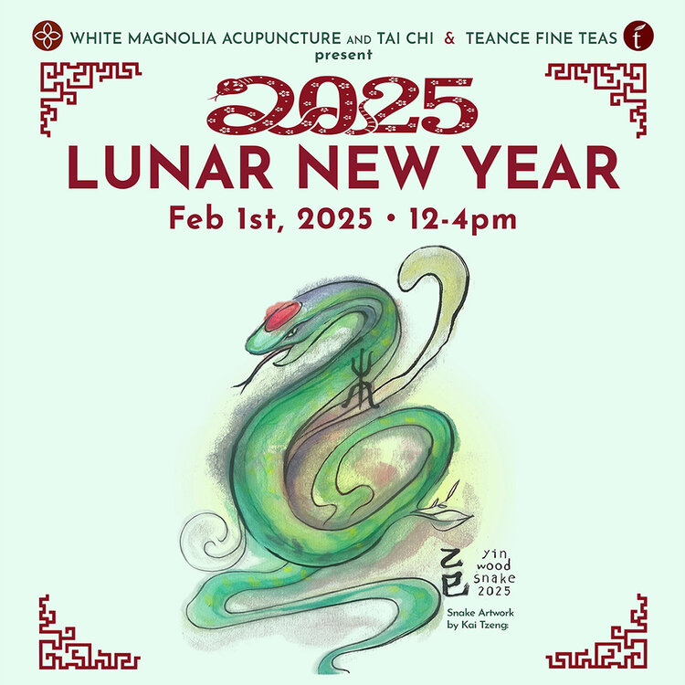 ***Thank you to Kai Tzeng for the beautiful artwork "Yin Wood Snake". Prints are available at the teashop.