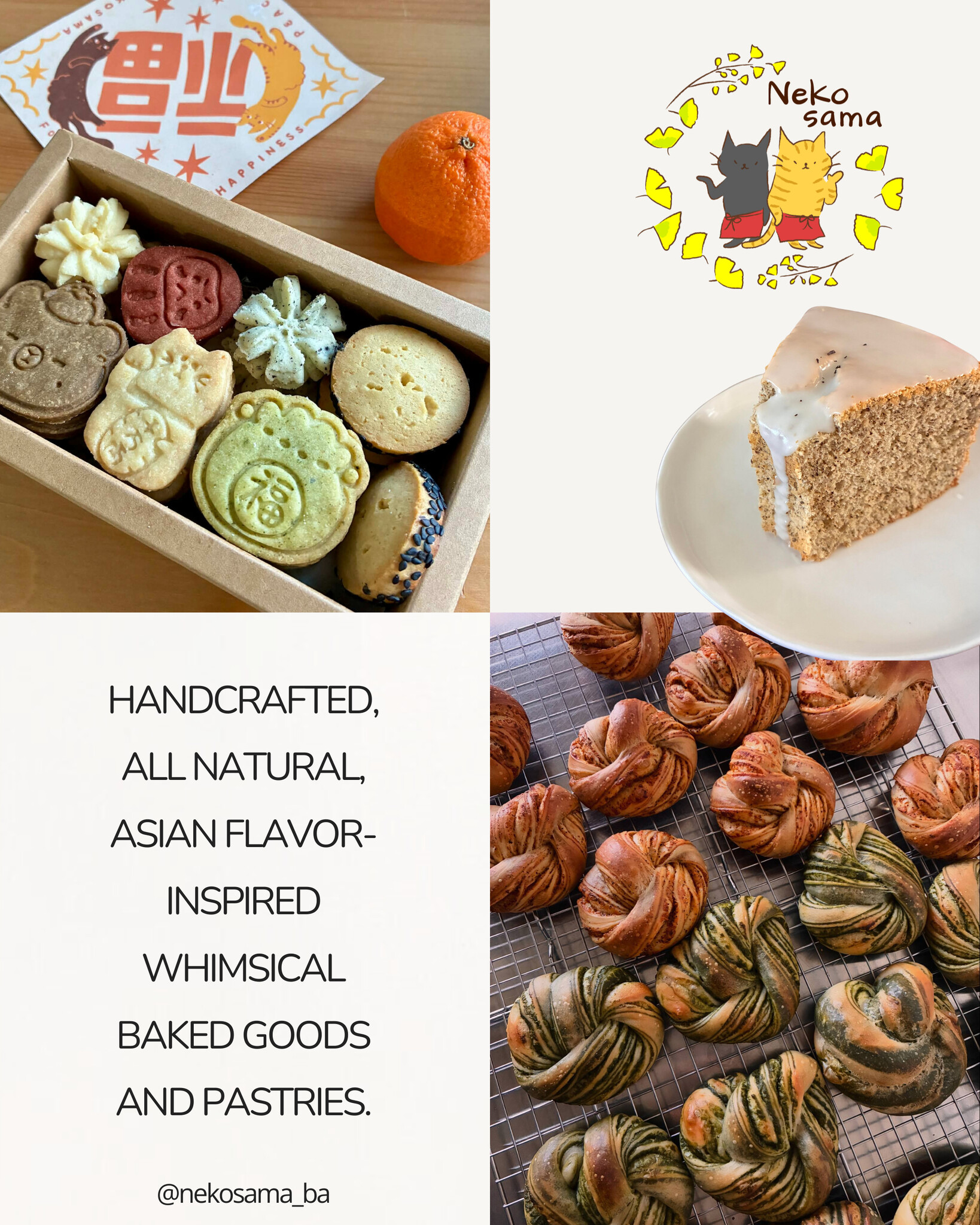 **Nekosama: a Taiwanese/woman owned local home bakery. Asian flavor inspired whimsical baked goods and pastries.