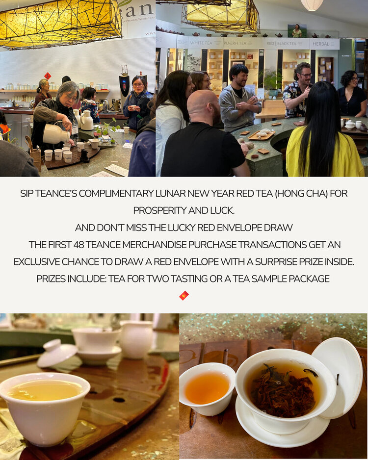 **The Lucky Red Envelope Draw! The first 28 merchandise sale transactions of Teance have the exclusive opportunity to draw a red envelope with exciting prizes inside. Prize: Tasting (Tea for Two) or Tea Sample Package!