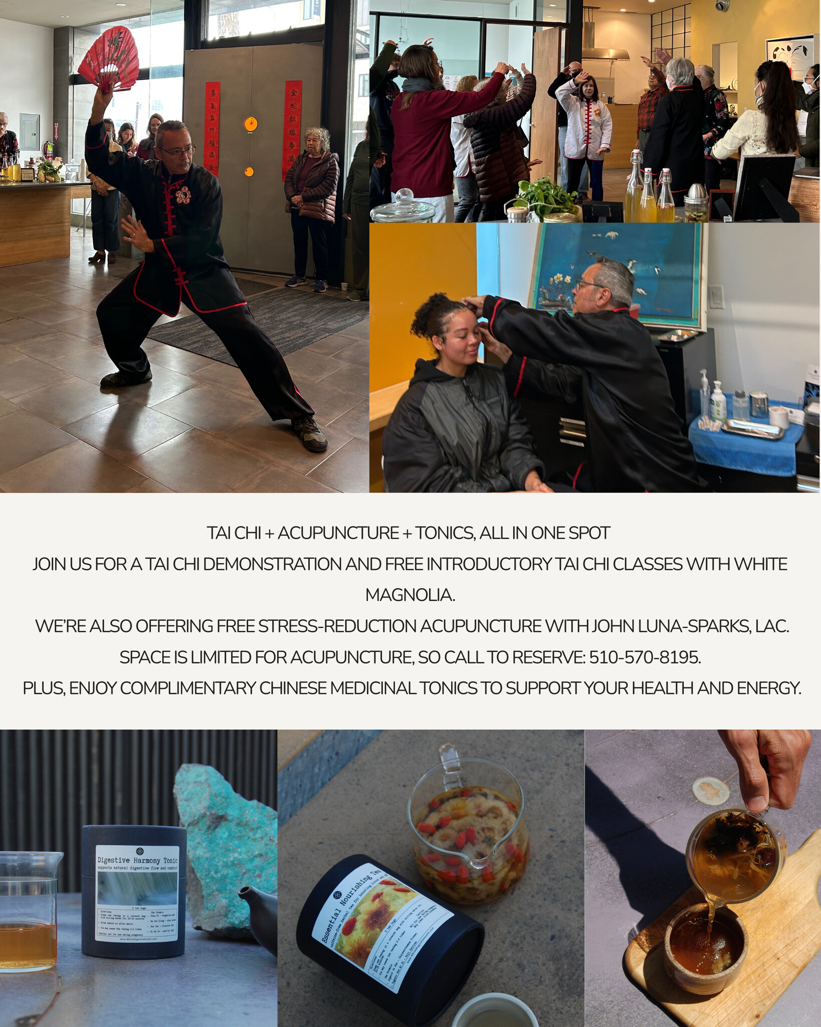 Teance & White Magnolia Acupuncture & Tai Chi present Lunar New Year celebration in West Berkeley. We are bringing in the Lunar New Year with activities.
