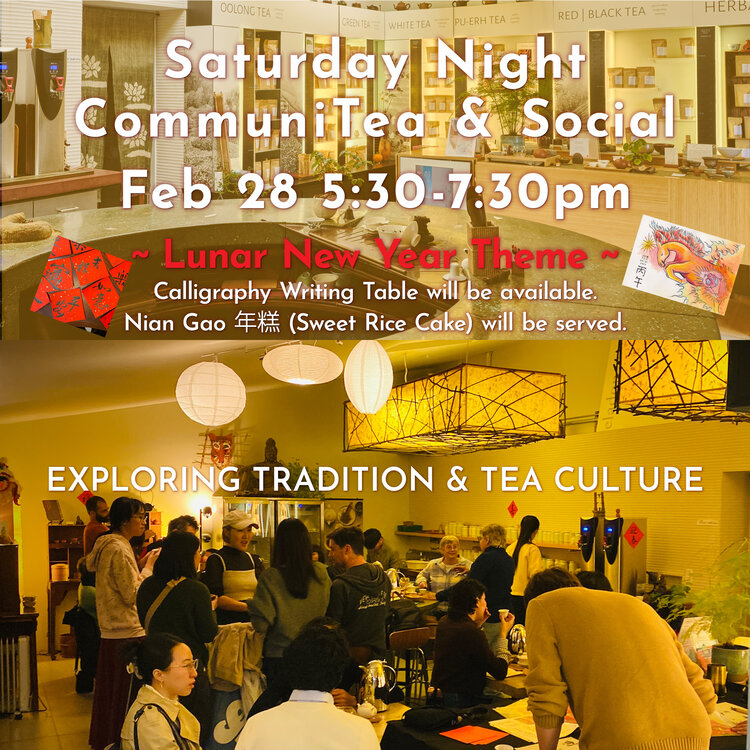One Saturday each month we will open our doors for additional evening hours to gather over tea. Join us for an evening of tea brewing, exploration, and connection with our community.