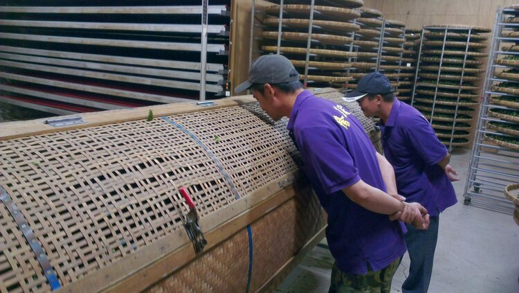 The teas are produced at the Yeh family farm at Da An, Shan Lin Xi 杉林溪 at an elevation of 1500 meters. Fog-drenched peaks dense with groves of towering bamboo and gingko trees create a unique, biodynamic farming environment that supports the rich complexity of this tea. The property has a modern 5-star facility for processing tea as well as an ancient house over 100 years old. Three generations of the Yeh family have lived in the house. The Yeh family takes pride in the care that they apply to the land and the tea plants on the farm.