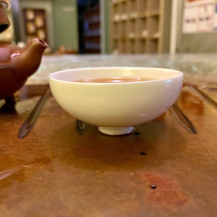 • The shallow, wide shape of this porcelain tasting cup is best suited for teas brewed at higher temperature. The large exposed surface area create nice a glowing ring.