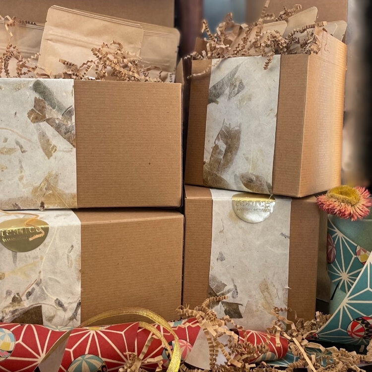 ***Each box is hand-trimmed and wrapped with handcrafted Japanese-design paper from Paper Tree in San Francisco.