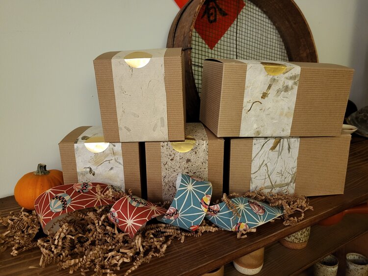 ***Each box is hand-trimmed and wrapped with handcrafted Japanese-design paper from Paper Tree in San Francisco.