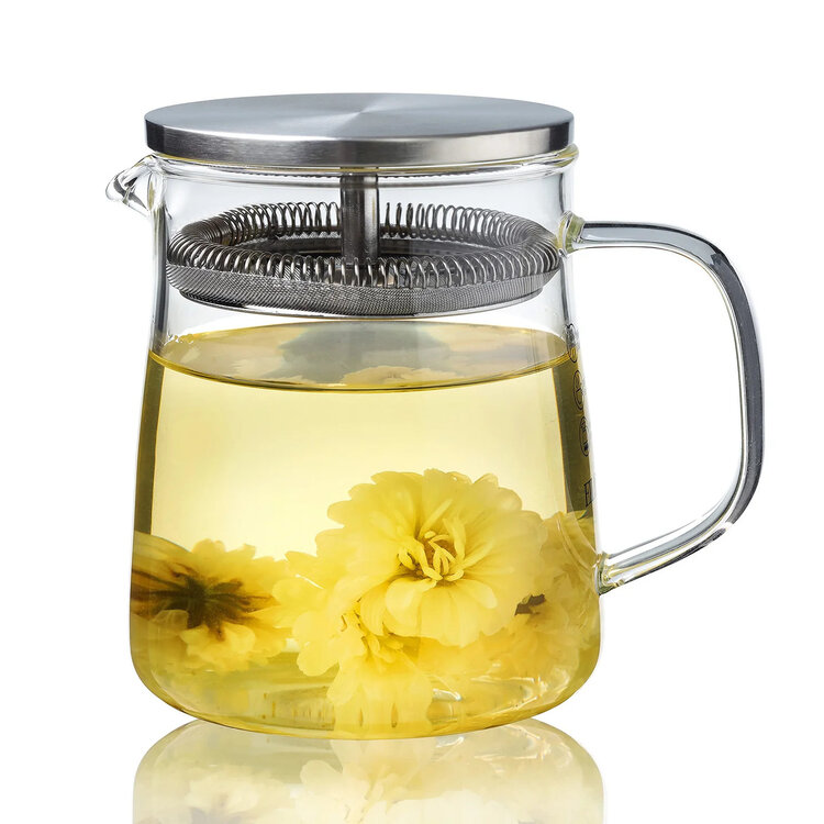 • Compared to traditional French Press teapots, this has a unique design with an upgraded filter structure. It coupled the strainer to the unique lid. The sturdy glass vessel is stove-safe and dishwasher-safe. Very user-friendly and easy to clean! 350 & 650