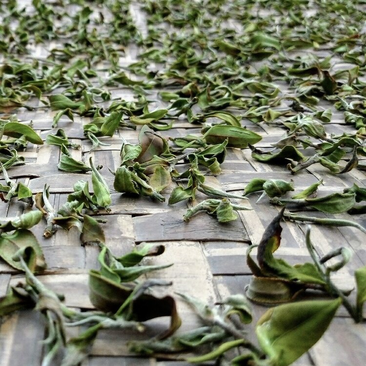 The Yeh family uses the Qing Xin oolong varietal to process as a white tea, and earlier this year they sent us a bag to taste. We tasted the tea with some Teance customers who gave it good feedback. When I visited Taiwan in April, I hand-carried a small batch back, each bag with Mrs. Yeh's beautiful handwriting. These special bags are called Zhuǎn yùn 轉韻 bag and help the tea transfer the taste profile through aging.