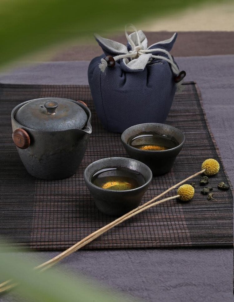 • Tea Brewing Travel Set include a brewing vessel, a cup, and a cloth bag to carry the set. These can be easily brought on-the-go, whether going on a hike or a road trip.