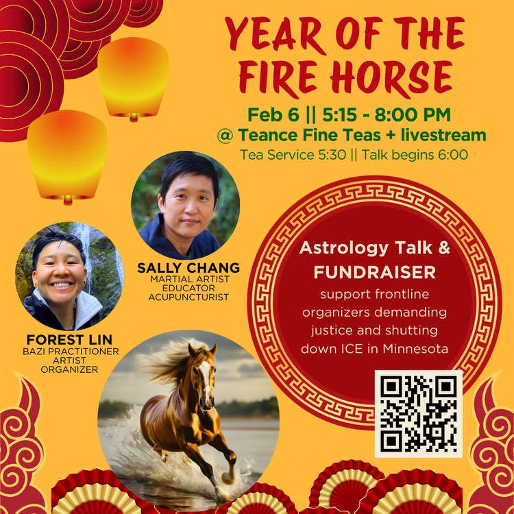 Join Sally Chang and Forest Lin for a live astrological conversation exploring the nature of Horse energy and what this year invites from us individually and collectively. Together, we’ll reflect on how Fire Horse energy can fuel heart-led action and how it can potentiate transformation.
